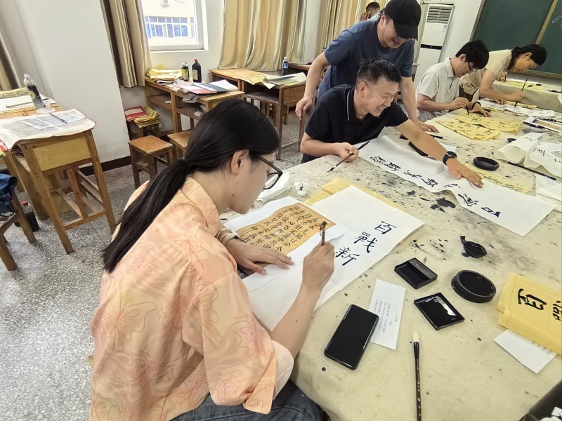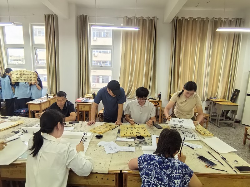 活动期间,全体在职教职工积极参与。教研组与行政组共七个组,每组精心推荐三名教师参加软笔书法比赛。软笔书法比赛在致远楼四楼学生书法教室精彩上演,教师们手持中楷毛笔,挥毫泼墨,尽显书法魅力。他们的作品或苍劲有力,或飘逸灵动,每一笔都蕴含着对教育事业的热爱,对传统文化的传承。