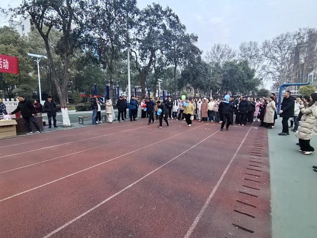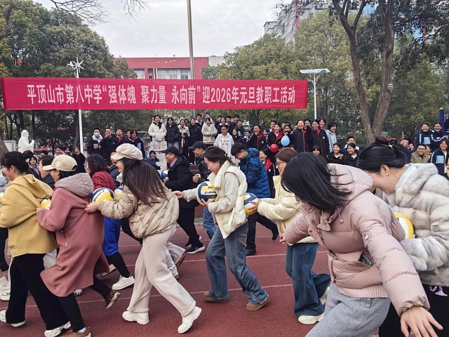 岁末暖阳映赛场,欢声笑语庆新年。为丰富教职工文体生活,增强团队凝聚力与协作精神,2025年12月30日下午,平顶山市第八中学运动场彩旗飘扬、笑语喧扬,“强体魄、聚力量、永向前”迎2026年元旦教职工文体活动在此圆满举行。全校教职工以饱满的热情投身趣味赛场,用运动与欢笑告别旧岁、喜迎新春。
