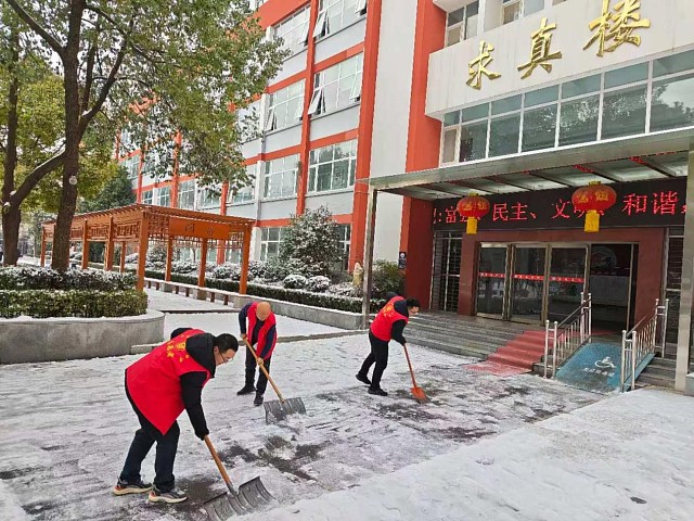 扫雪过程中,没有过多的口号,大家专注于手中的活儿。遇到结冰较厚的路段,有人俯下身子用铁锹一点点撬,有人用扫帚反复清扫。经过近两个小时的奋战,校门口、校园主干道、教学楼出入口等重点区域的积雪和薄冰被全部清理干净,为师生开辟出了一条安全畅通的通道。看着整洁的路面,参与扫雪的老师纷纷表示,能为大家的出行安全出一份力,累点也值得。
