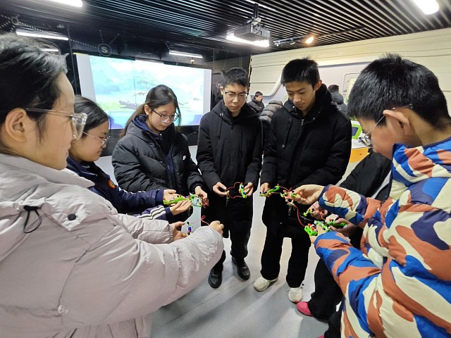 活动的最后一个环节,是动手创造的实践课堂。在科技馆辅导老师的指导下,同学们分组协作,投入科技小手工的制作中。无论是简易机器人拼装、“机器狗”操作,还是创意电路搭建,每一项任务都需要他们灵活运用所学的科学知识,动手解决实际问题。制作过程中,同学们全神贯注,相互讨论,不断尝试与调整,当亲手制作的模型成功运转时,脸上无不洋溢着成功的喜悦和创造的兴奋。这不仅锻炼了他们的动手能力、团队协作精神,更重要的是将创新的种子植入心田,让他们在实践中体会了从设计到实现的完整过程,感悟到工匠精神和实践出真知的道理。